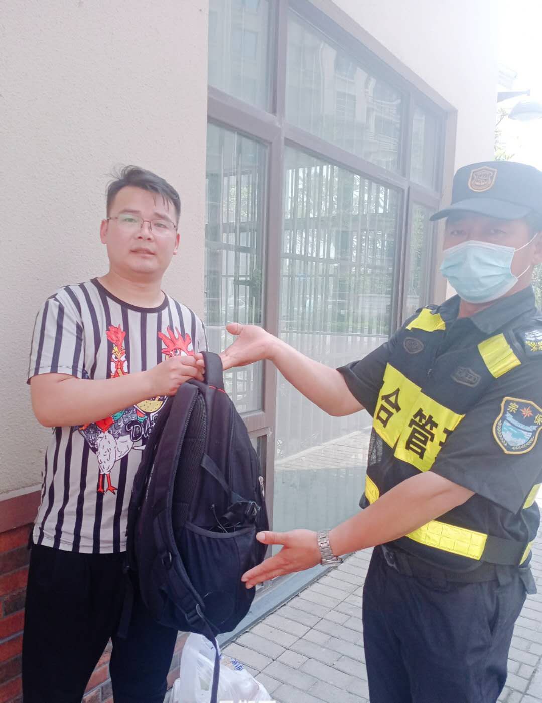 小孫在原地等了二十分鐘左右,無人認領,便上報項目負責人。按照指示,先把背包放休息崗點,等待失主認領。14:30,失主經(jīng)打聽,聯(lián)系到隊員孫俊山,原來失主出去旅游,上車匆忙把包忘了,經(jīng)確認失主身份信息和包內(nèi)物品無誤后歸還給失主。