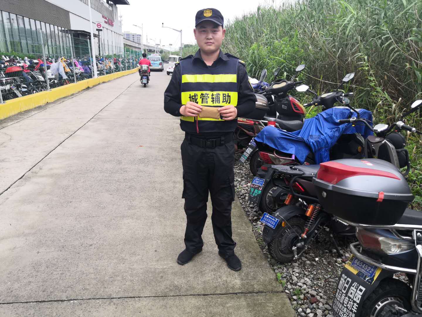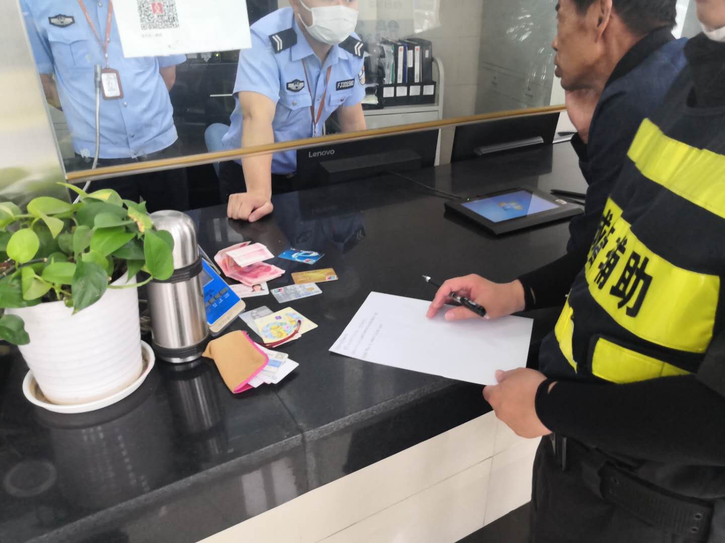 6月16日15:18,宗保公司駐周浦市容項目隊員黃俊在周浦東地鐵站巡邏途中,撿到一只錢包。經(jīng)查看,里面除了現(xiàn)金、銀行卡、各類證件外,還有一張15萬的定期存單。因黃俊的崗位是單人單崗,且是巡邏執(zhí)勤,所以黃俊將此事上報當班組長,并由組長將錢包交到周東派出所。