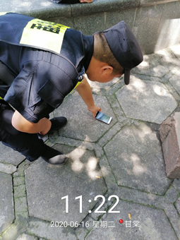 6月16號11:22,黃山浦華駐黃山區(qū)太平市容隊員王嘉豪、吳威在太平城區(qū)中通廣場巡邏時撿到一部手機。兩位隊員第一時間報告帶隊骨干,得到指令原地等待失主。