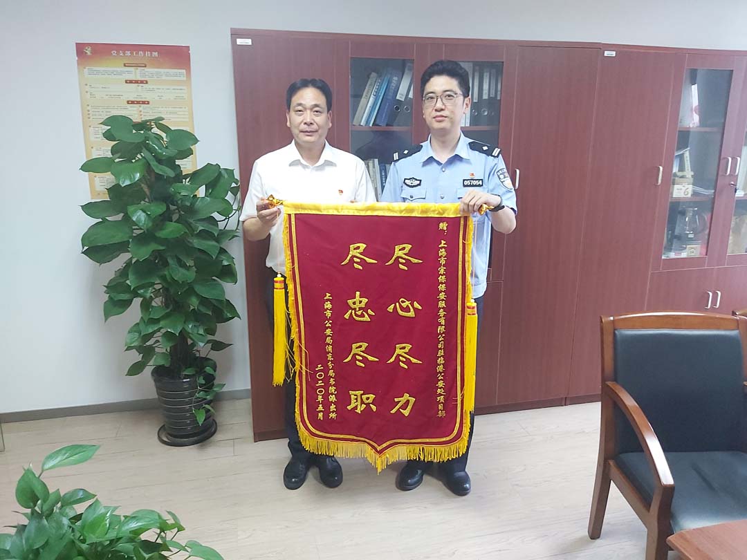 6月15日,臨港公安處指揮中心主任周明敏親臨宗保公司駐臨港公安處輔警項(xiàng)目,贈(zèng)送一面繡有“盡心盡力,盡忠盡職”八個(gè)大字的錦旗,并對(duì)臨港公安處輔警項(xiàng)目全體員工在疫情防控中的優(yōu)秀工作表現(xiàn)及突出的應(yīng)急處置能力,表示肯定和贊揚(yáng)。