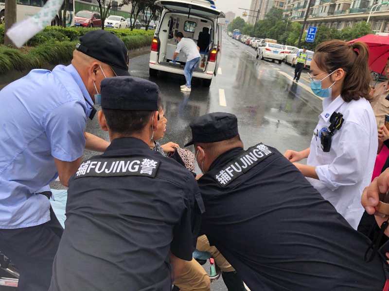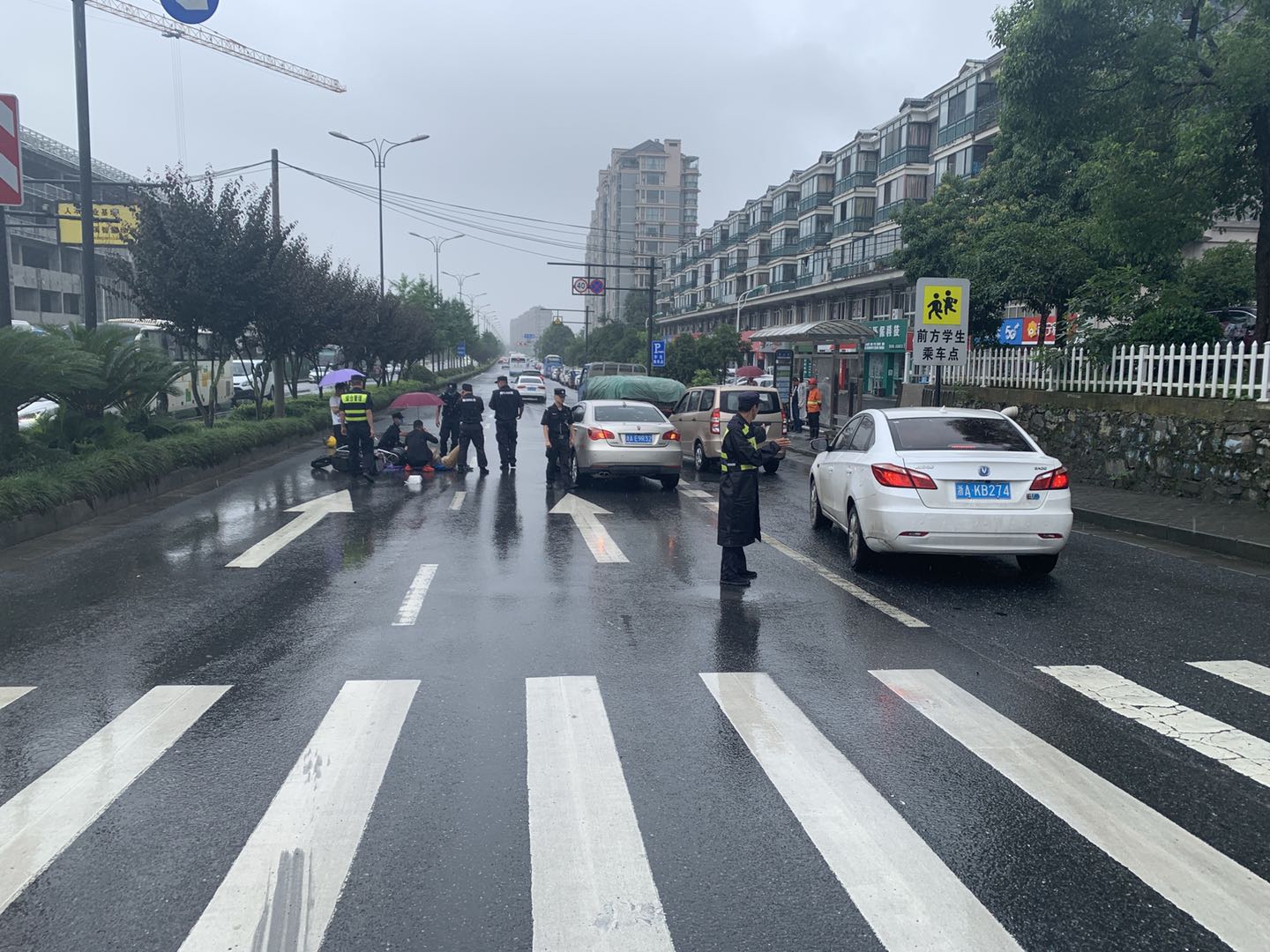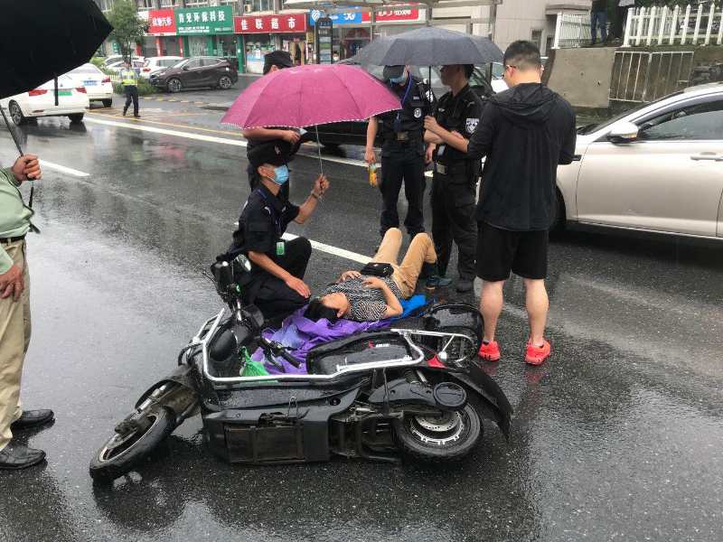 執(zhí)勤突遇交通事故 急伸援手冒雨施救 ——民泰公司駐閑林輔警項(xiàng)目隊(duì)員救助交通事故受傷人員