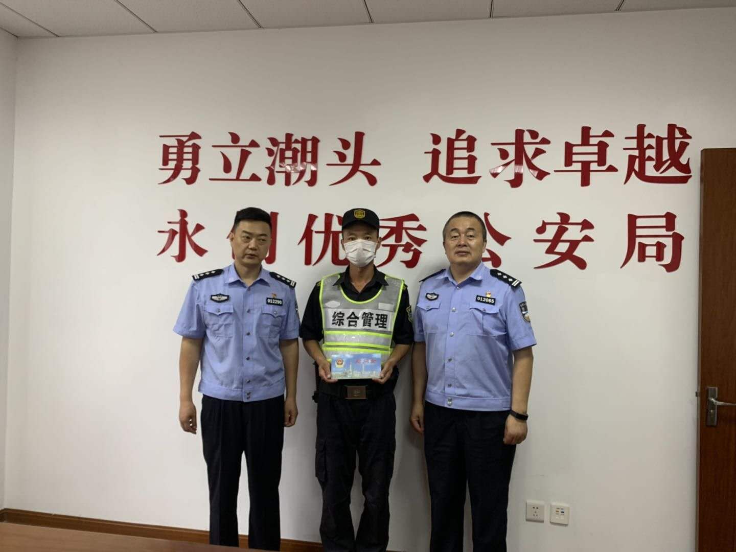 6月29日,浦東分局和陸家嘴派出所相關(guān)領(lǐng)導(dǎo)來到宗保公司駐陸家嘴綜合管理項(xiàng)目,對在6月23日配合民警執(zhí)勤中受傷的隊(duì)員付紹祥進(jìn)行慰問,并送上2000元慰問金。
