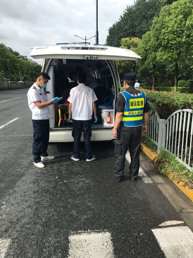 小宋意識(shí)到該男子可能是突發(fā)疾病,處于無意識(shí)狀態(tài)。于是就立即向城運(yùn)中心匯報(bào)情況,同時(shí)撥打了110報(bào)警電話和120急救電話。