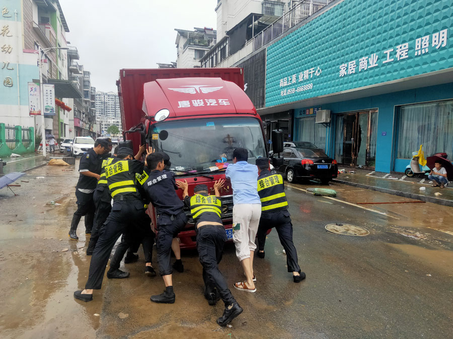宗保公司駐黃山區(qū)域全體隊(duì)員在各區(qū)縣城市管理執(zhí)法局的帶領(lǐng)下,按照預(yù)定方案奔赴各自崗位,緊張有序地開展各項(xiàng)防汛保障工作。