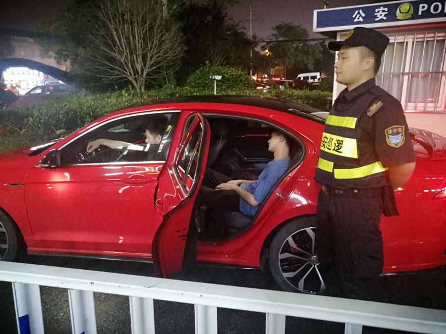 7月10日20:00,宗保保安駐惠南科教園區(qū)派出所項(xiàng)目夜班組隊(duì)員李家旺、張立巡邏至禹州商業(yè)廣場(chǎng)時(shí),發(fā)現(xiàn)一名男子躺在廣場(chǎng)綠化帶旁邊。見此情景,兩名隊(duì)員立即走近查看該男子的情況,多次試圖叫醒該男子,但該男子熟睡不醒,且渾身散發(fā)著濃濃的酒氣。兩名保安員把醉酒男子扶到旁邊凳子上,把隨身攜帶的水給他喝,待該男子稍微清醒一點(diǎn)后,聯(lián)系他的朋友過來接他。出于安全考慮,在等待其朋友時(shí),兩名保安員一直守候在醉酒男子身邊。