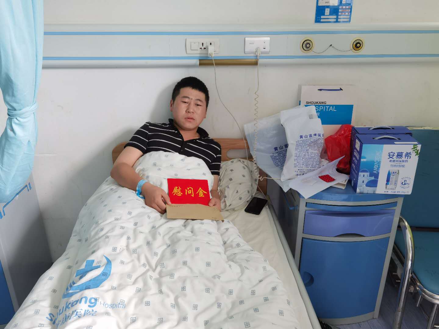 7月14日,黃山市黃山區(qū)城市管理行政執(zhí)法局湯口分局副局長江爭成、隊長吳先峰代表湯口鎮(zhèn)人民政府,在公司副總經(jīng)理謝啟鳳的陪同下,到醫(yī)院看望慰問湯口市容項目隊員劉強,并送上慰問金。