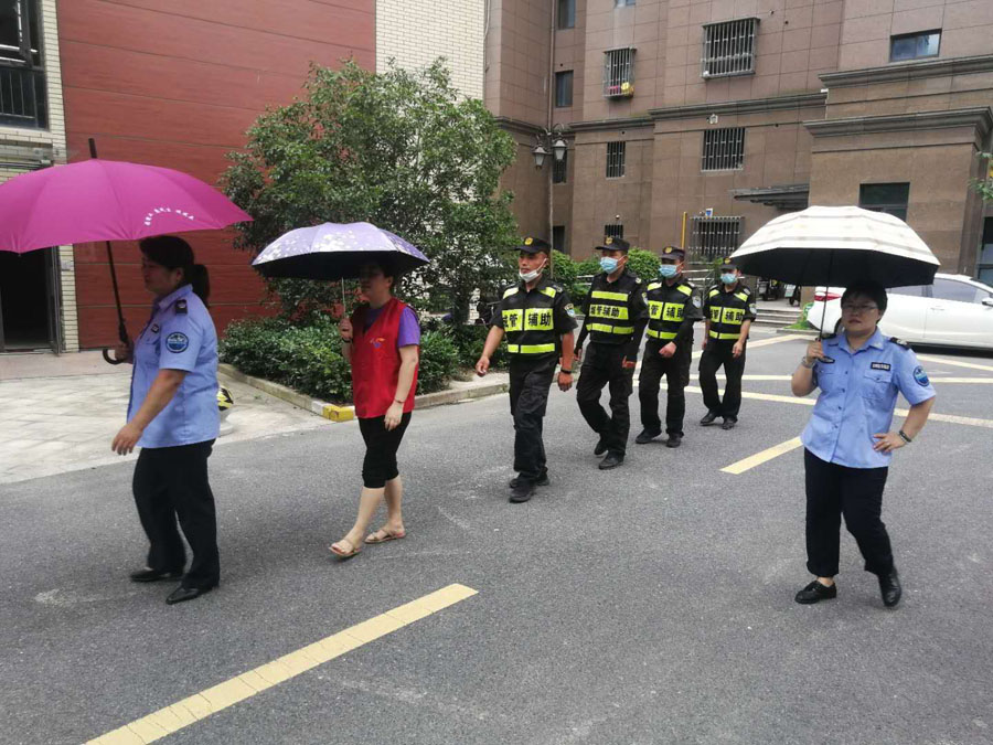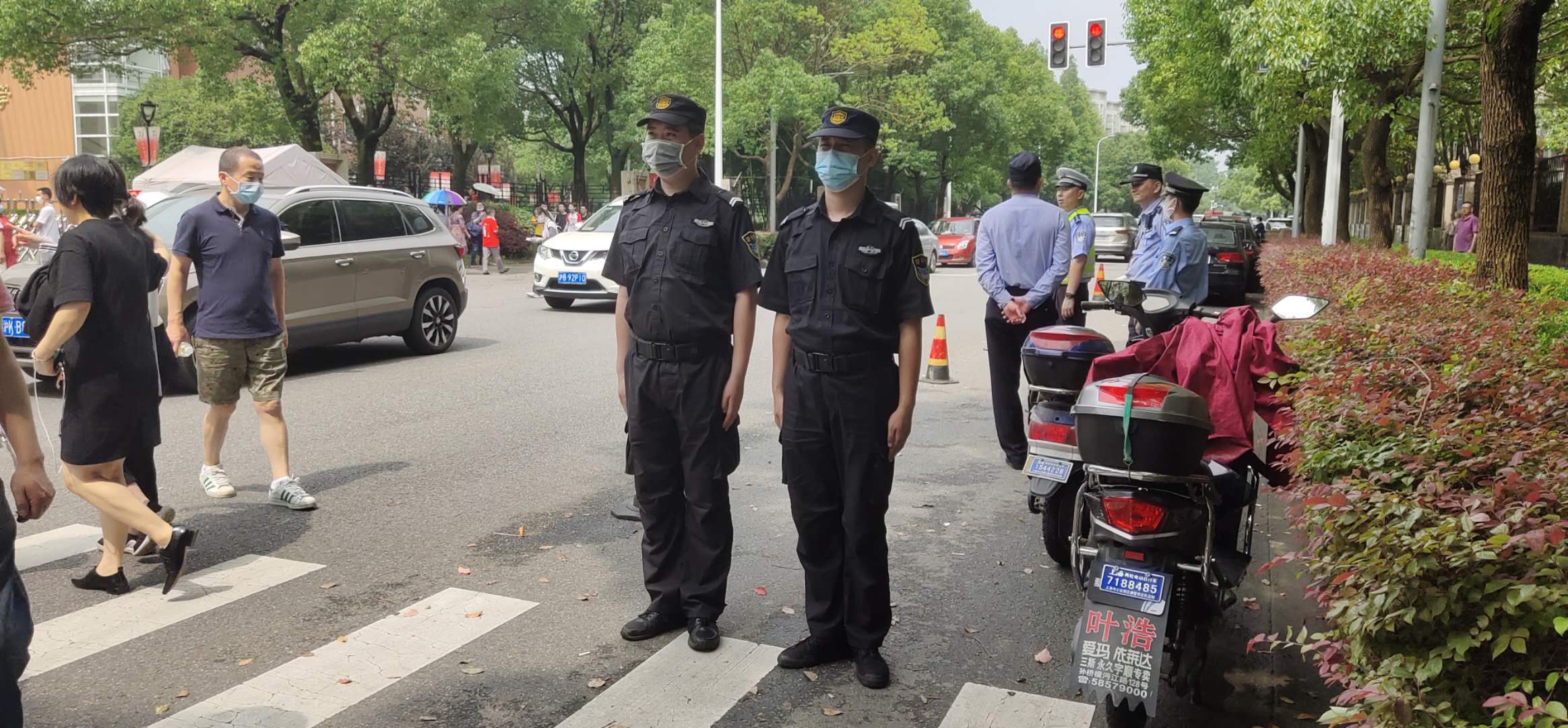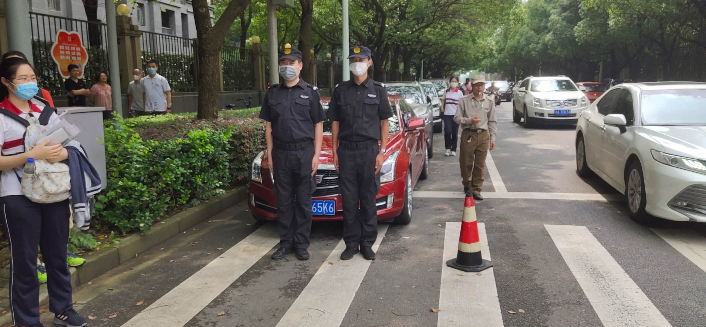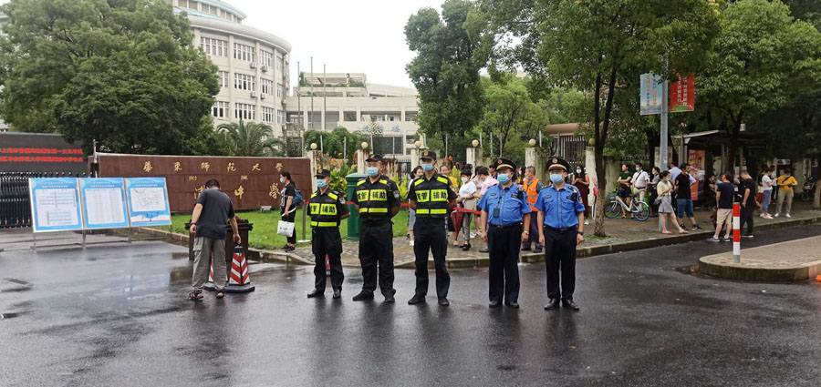 公司挑選近200名素質(zhì)過硬、業(yè)務(wù)精干的隊(duì)員擔(dān)負(fù)周浦中學(xué)、南匯一中、南匯中學(xué)、華師大二附中、金山衛(wèi)鎮(zhèn)金衛(wèi)中學(xué)等考點(diǎn)附近相關(guān)道路的保障任務(wù),配合有關(guān)部門對考場周邊的噪音污染、占道設(shè)攤、交通不暢、體溫測量等工作進(jìn)行輔助管理。高考日,考點(diǎn)周邊的大街上、校門口、大雨中,都閃現(xiàn)著宗保人護(hù)考的身影,他們頂著潮熱、冒著大雨、一絲不茍,為助力學(xué)子圓夢值守護(hù)航。