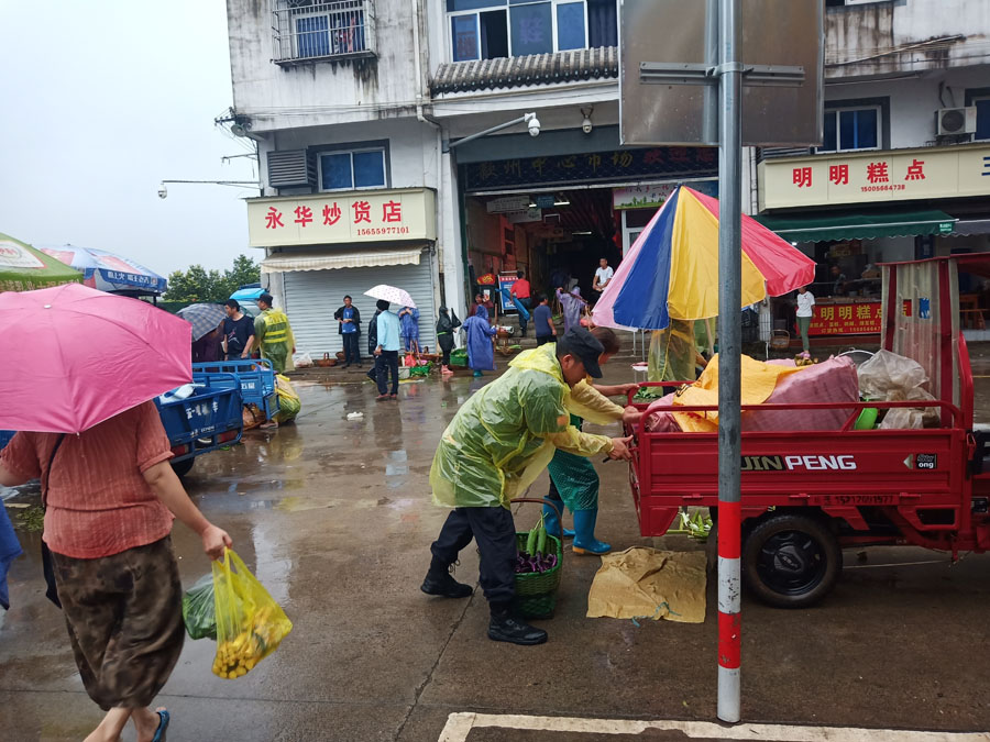 自7月7日歙縣縣城遭受洪災(zāi)以來,歙州市場無法正常營業(yè),導(dǎo)致自產(chǎn)自銷點(diǎn)菜農(nóng)無法在市場內(nèi)銷售,100余戶菜農(nóng)全部在市場外圍占道經(jīng)營,嚴(yán)重影響了鴻基商貿(mào)城內(nèi)交通秩序。