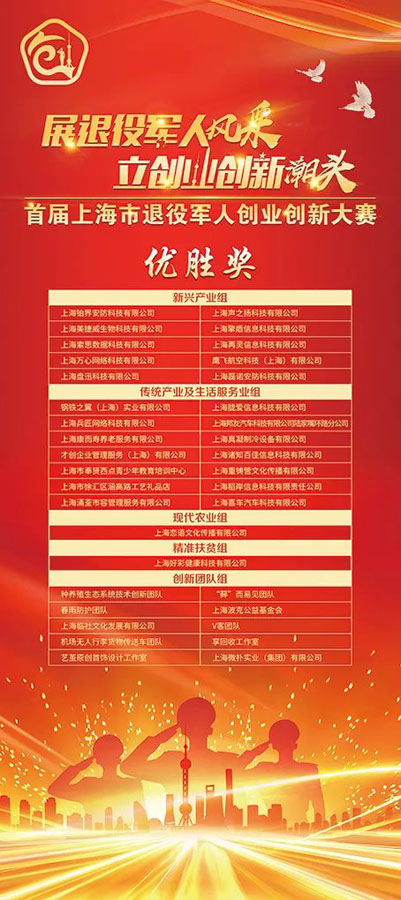 7月28日,首屆上海市退役軍人創(chuàng)業(yè)創(chuàng)新大賽頒獎典禮在浦東新區(qū)張江人工智能館舉辦。宗保公司旗下的鷹飛航空科技(上海)有限公司榮獲優(yōu)勝獎。