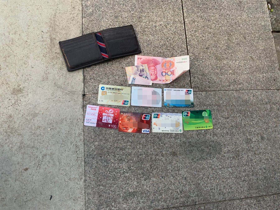 7月30日8點30,浙江民泰閑林輔警項目早班組組長楊有福,巡邏至西溪華東園東門口非機動車道時,在路邊撿到一個錢包,里面有現(xiàn)金105元,一張超市購物卡以及個人證件和數(shù)張銀行卡。