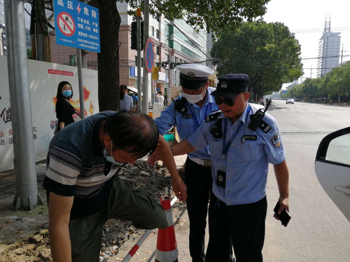 隊(duì)員王學(xué)峰、朱偉偉了解清楚情況后,將情況上報(bào)給當(dāng)班民警,并撥打虹橋所指揮中心電話,請(qǐng)求由民警到現(xiàn)場(chǎng)處理。