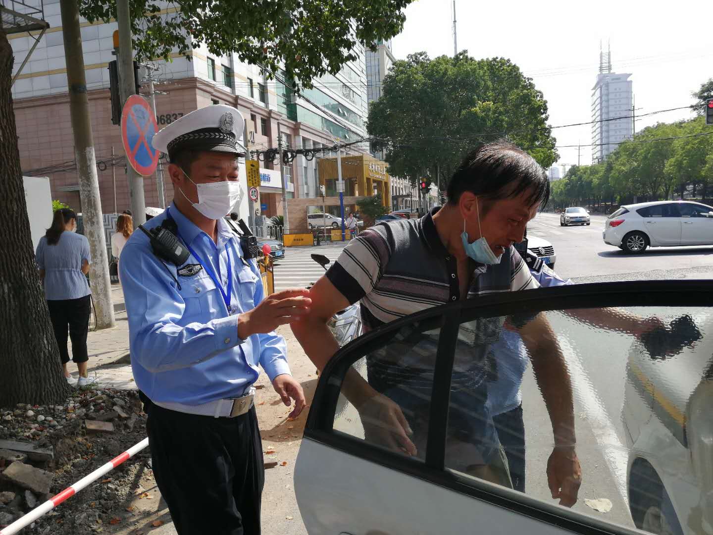 7月23日8:38,虹橋交警輔助項(xiàng)目機(jī)動(dòng)巡邏組隊(duì)員王學(xué)峰、朱偉偉在宜山路萬(wàn)源路路口巡邏時(shí),遇到一名失憶老人求助。