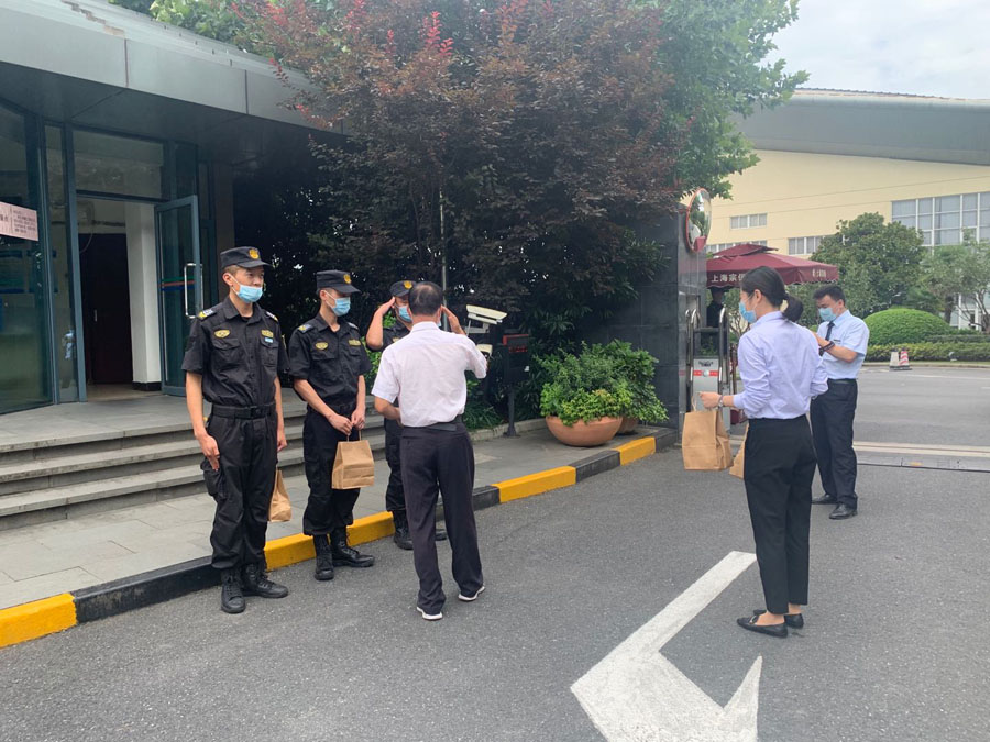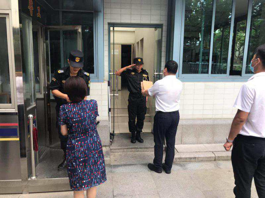 每到一處宗保公司隊(duì)員都列隊(duì)歡迎。校領(lǐng)導(dǎo)詳細(xì)詢問(wèn)了員工的工作情況、身體狀況、有哪些需要等,稱贊宗保隊(duì)員們?cè)诎脖9ぷ髦袃x容儀表好、業(yè)務(wù)熟練精湛、車輛指揮有序,對(duì)隊(duì)員們堅(jiān)守崗位、認(rèn)真履責(zé)、默默付出,確保各校區(qū)的安全表示感謝!并囑咐大家要注意飲食和休息,加強(qiáng)隱患排查,做好高溫天氣防暑降溫工作。隊(duì)員們紛紛表示,牢記領(lǐng)導(dǎo)的關(guān)心,再接再厲,踏實(shí)工作,堅(jiān)決完成好工作任務(wù),不辜負(fù)領(lǐng)導(dǎo)的期望和關(guān)懷。