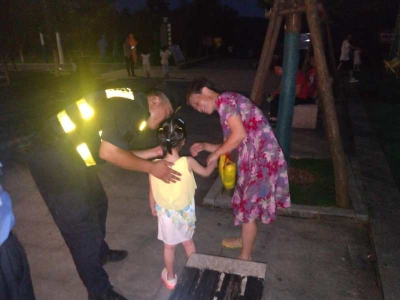 無獨(dú)有偶,當(dāng)日19:36,項(xiàng)錦鐘、馬柯楠兩名隊(duì)員巡邏至橫江公園時(shí),聽到有小孩哭聲,便循聲過去,原來是一個(gè)小孩找不到家人了。隊(duì)員陪小孩在原地等待了大概10分鐘左右,小孩的外婆來到現(xiàn)場將小孩接走。