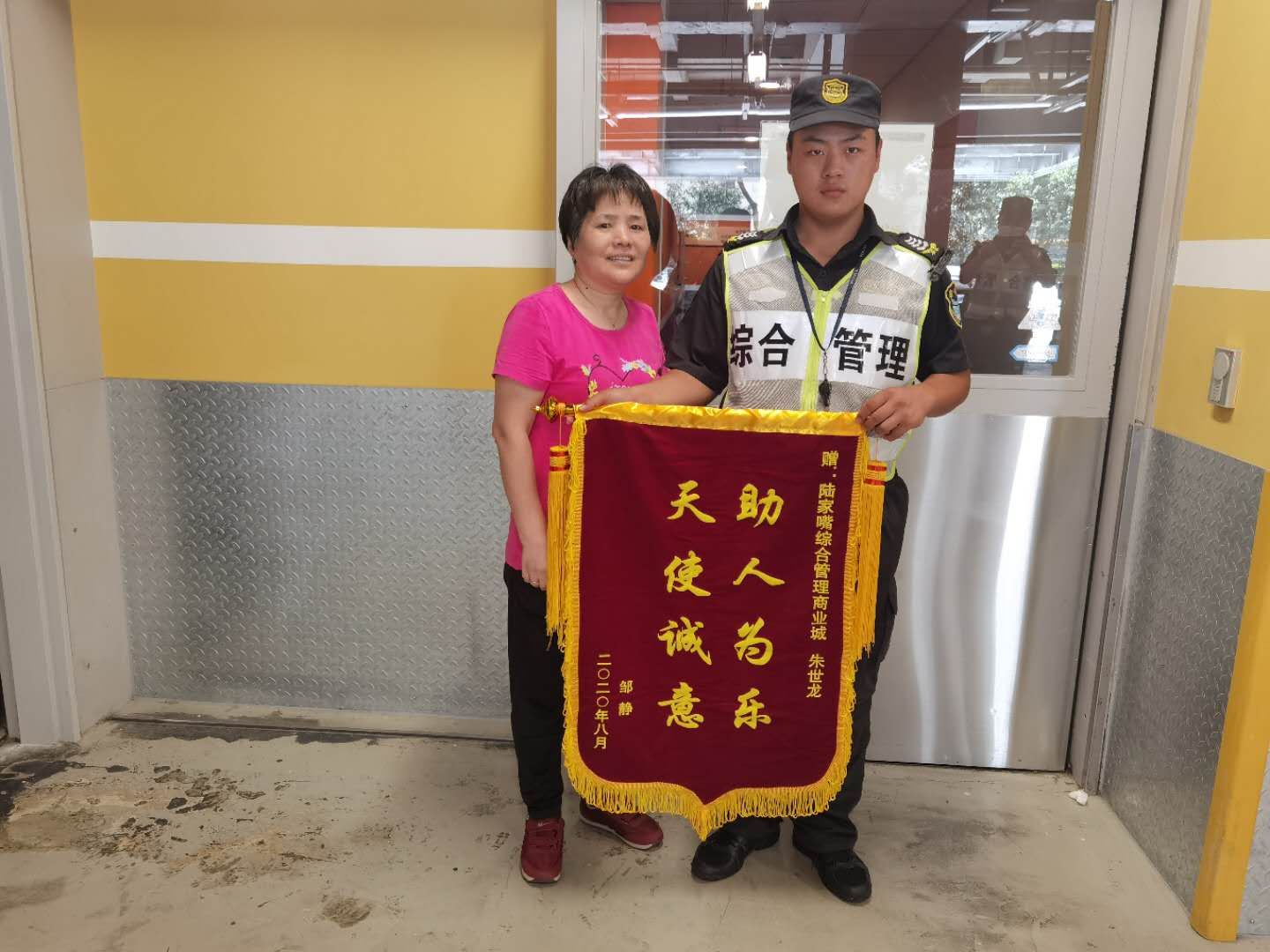 8月25日,一面繡有“助人為樂,天使誠意”的錦旗送到了宗保公司駐陸家嘴綜合管理項(xiàng)目朱世龍手中,并合影紀(jì)念。
