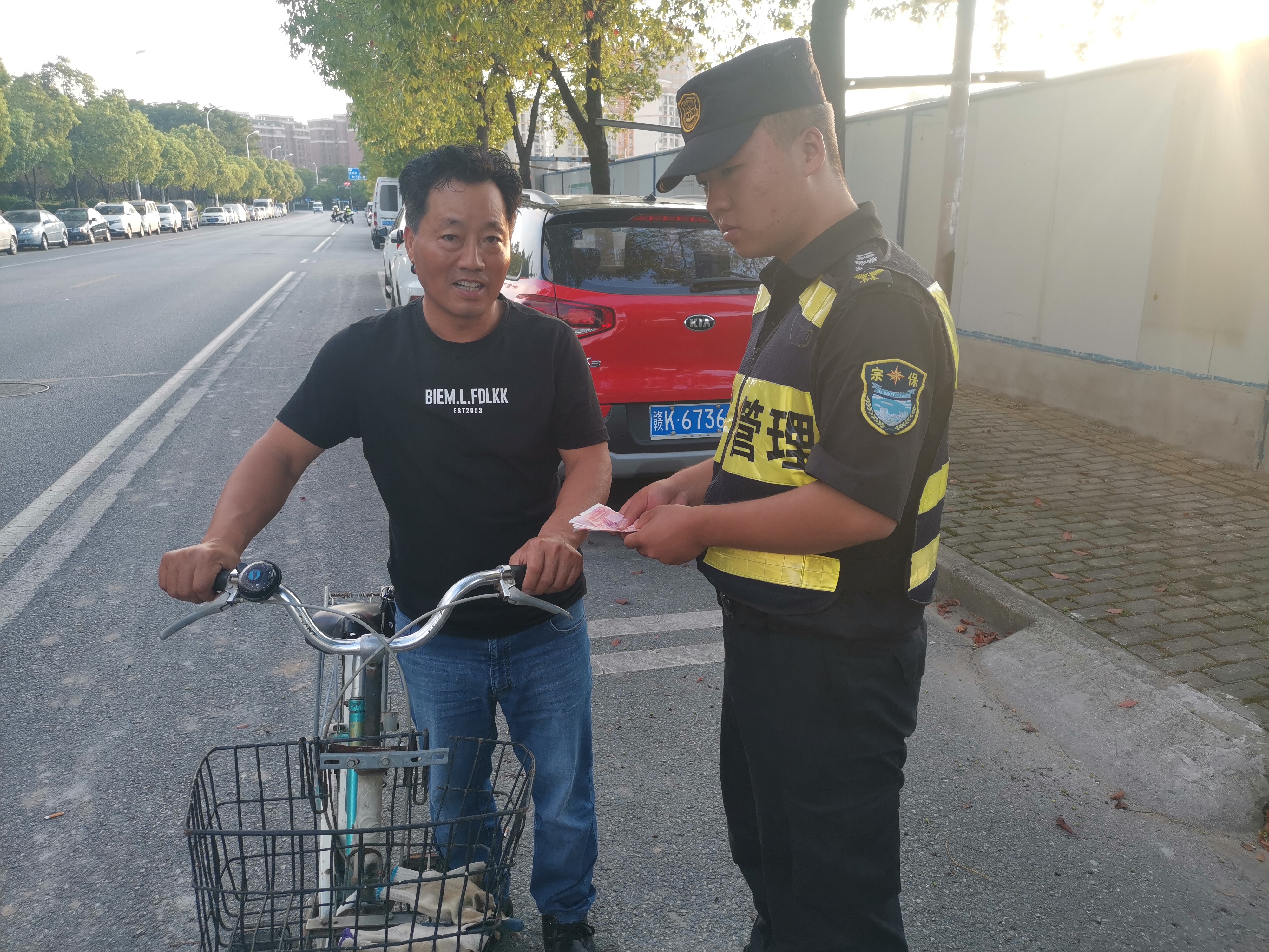 大約過了10分鐘,有位騎車中年男子神色著急,見人就詢問,有沒有撿到現(xiàn)金。張斌、劉學(xué)龍見狀立馬上前喊住男子,經(jīng)過溝通,核對丟失現(xiàn)金金額無誤后,把錢歸還給失主,失主再三致謝,對兩名隊(duì)員拾金不昧的精神點(diǎn)贊和表揚(yáng)。