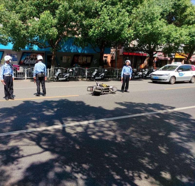 龔二龍、胡靜見(jiàn)狀一邊立即上報(bào)帶隊(duì)負(fù)責(zé)人,一邊疏導(dǎo)指揮交通。張繼則查看外賣小哥傷情,安撫其情緒,對(duì)現(xiàn)場(chǎng)進(jìn)行拍照取證。所幸外賣小哥傷勢(shì)不嚴(yán)重。