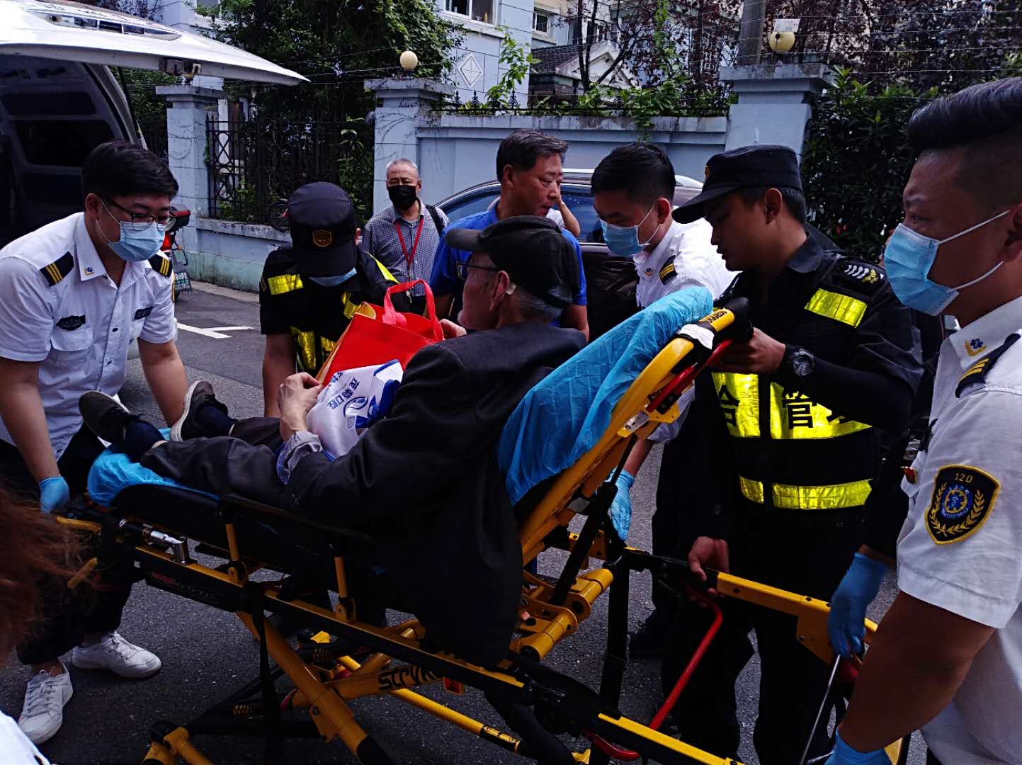 張銀在無法從老人含糊不清的敘述中了解老人家人的情況下,撥打了120救護(hù)車和派出所內(nèi)部電話請(qǐng)求對(duì)老人進(jìn)行救援。很快,120救護(hù)車趕到現(xiàn)場(chǎng),兩名隊(duì)員幫醫(yī)護(hù)人員將暈倒老人抬上救護(hù)車,送往東方醫(yī)院南院進(jìn)行救治。