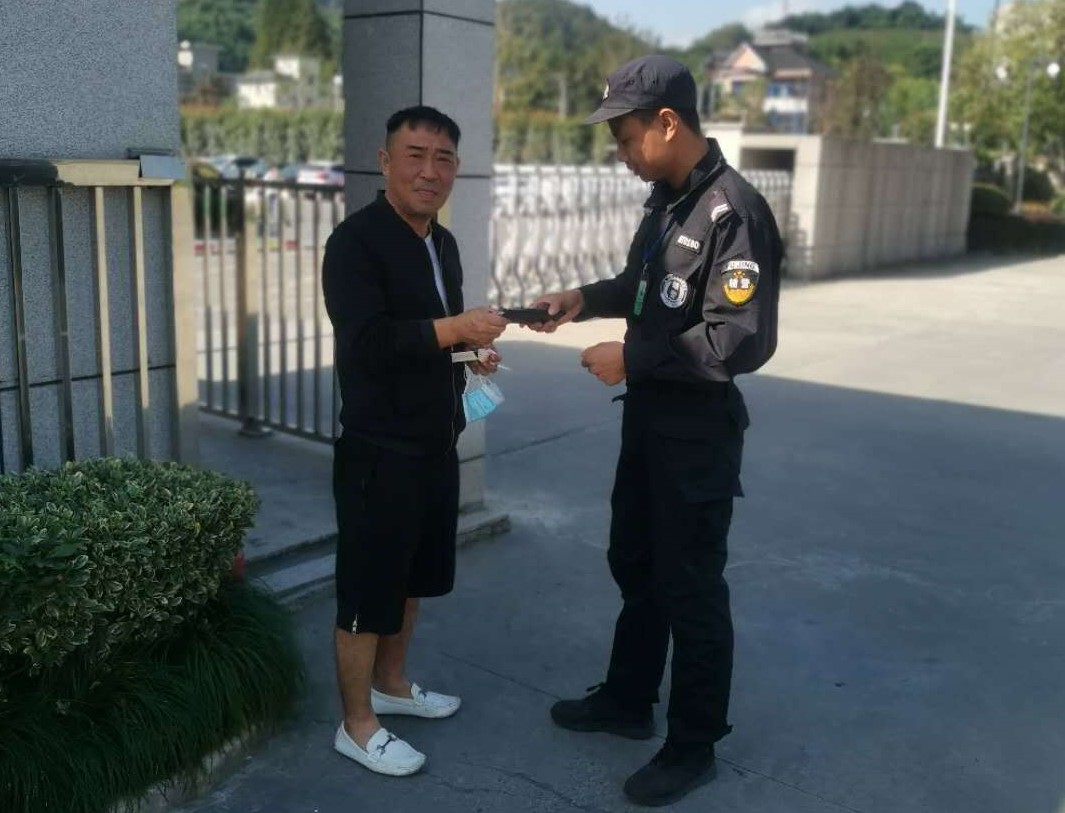 10月8日,宗保公司駐閑林輔警項(xiàng)目隊(duì)員陳一實(shí)將撿到的一部手機(jī)歸還給失主。