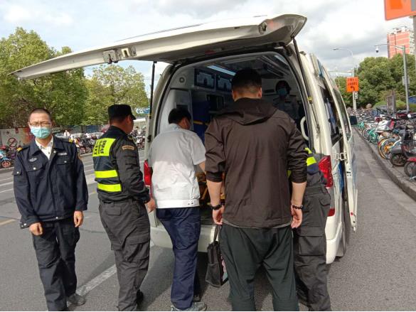 隊(duì)員立即撥打120急救電話和派出所內(nèi)部電話請(qǐng)求援助,并上報(bào)項(xiàng)目負(fù)責(zé)人,很快,120救護(hù)車趕到,隊(duì)員幫助醫(yī)護(hù)人員將傷者抬到救護(hù)車上。