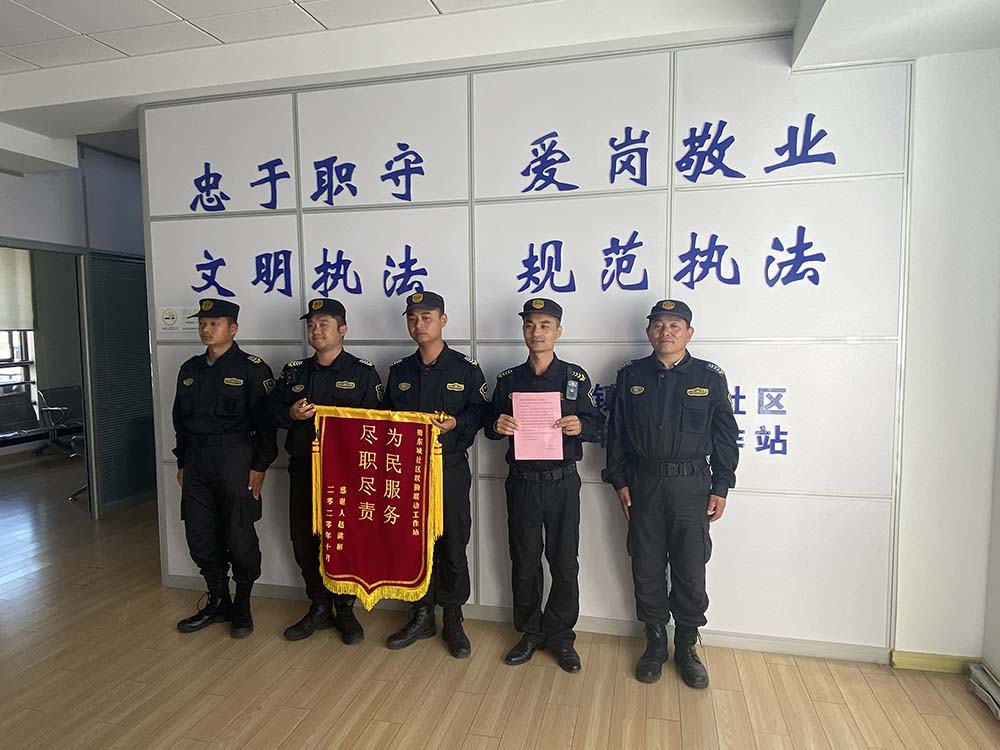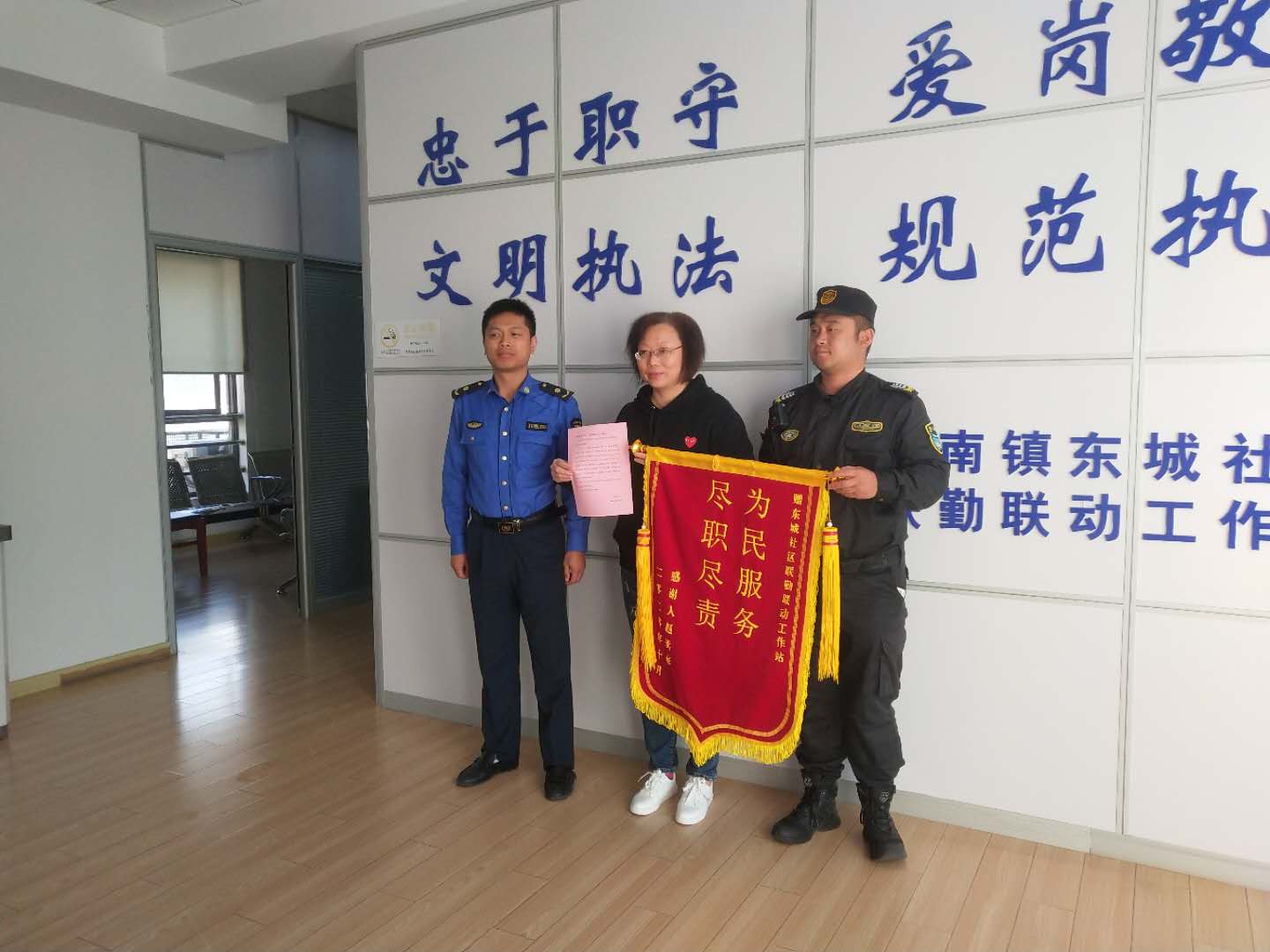 10月20日,一面繡有“為民服務(wù) 盡職盡責(zé)”的錦旗送到了宗保公司駐惠南鎮(zhèn)城管中隊項目隊員手中。