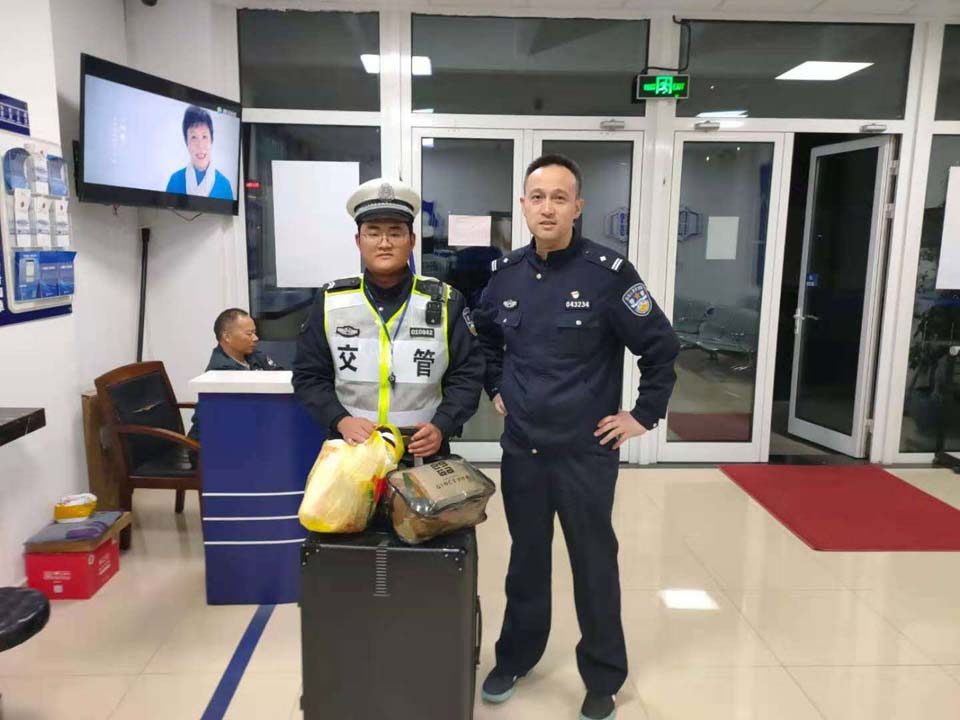 20分鐘后,失主趕來認(rèn)領(lǐng),在核對(duì)信息無誤后,隊(duì)員將公文包歸還失主,失主對(duì)宗保隊(duì)員拾金不昧的行為贊不絕口。