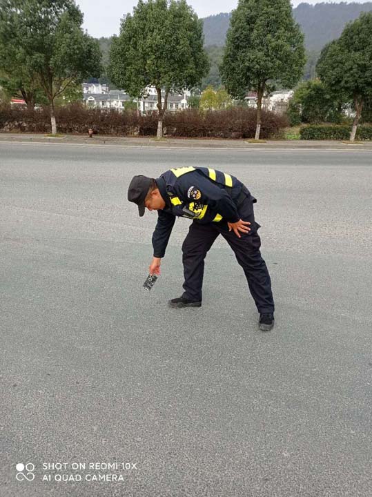 當(dāng)天7:10左右,李占明在北翟路華江路路口值勤時(shí)撿到一部手機(jī),便立即報(bào)告項(xiàng)目隊(duì)長(zhǎng),主動(dòng)聯(lián)系失主過來取手機(jī)。隊(duì)長(zhǎng)到達(dá)現(xiàn)場(chǎng),拍照取證后和李占明一起在原地等待。