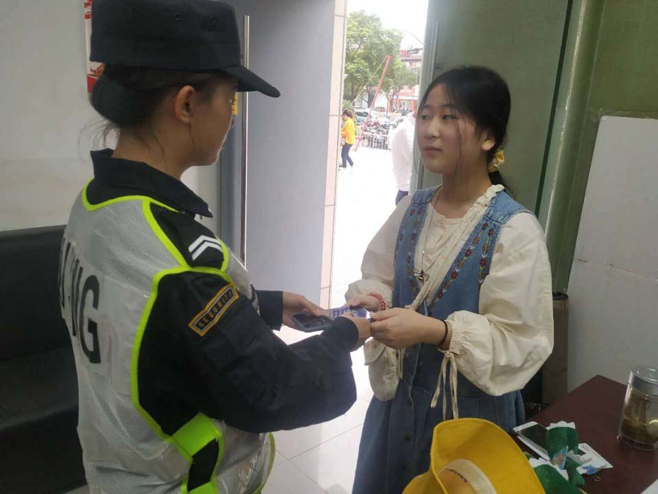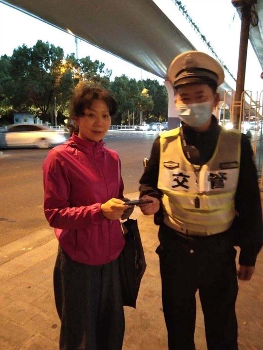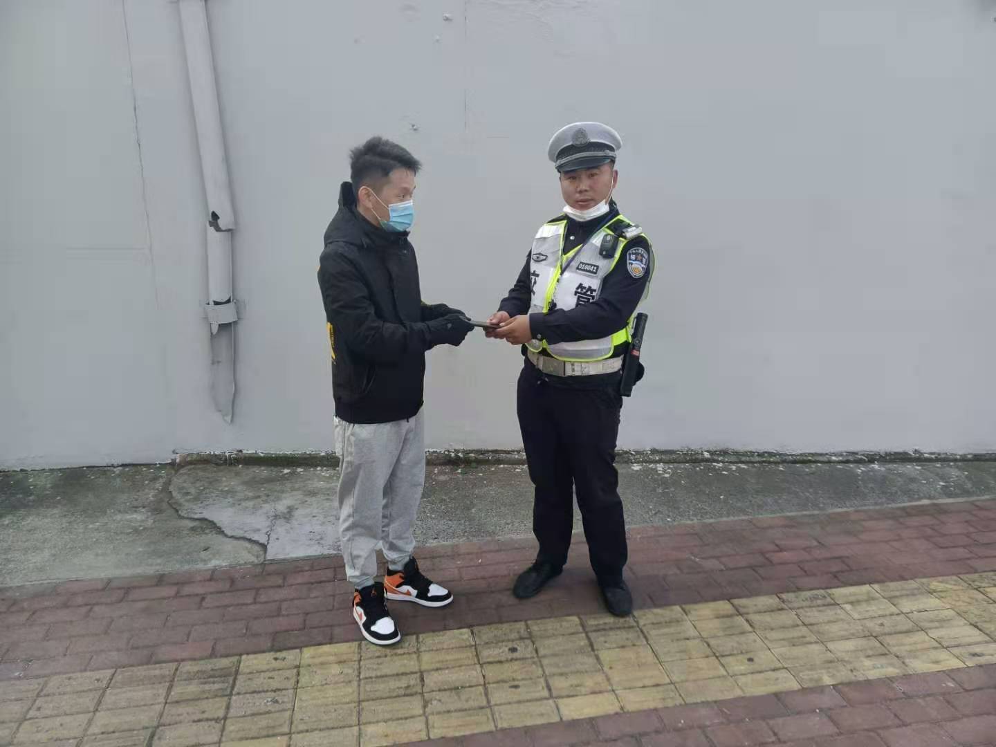 半小時(shí)后,失主打來電話約定好碰面地址。不一會(huì)兒,一個(gè)外國(guó)友人急匆匆地趕過來,核對(duì)無誤后隊(duì)員將手機(jī)交還失主。失主拿到手機(jī)后,對(duì)宗保隊(duì)員一再表示感謝。