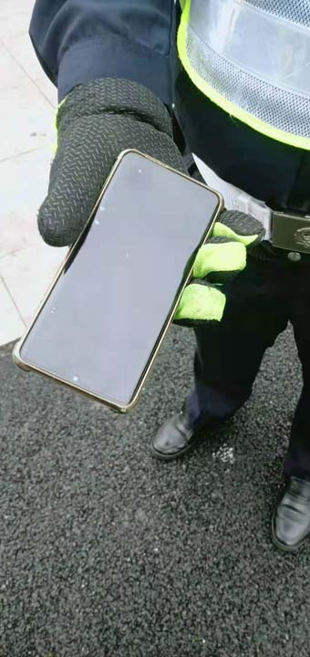 當(dāng)日16:45左右,王中坦在滬閔路報(bào)春路口值勤時(shí)撿到一部手機(jī),因手機(jī)設(shè)有開機(jī)密碼,無法獲取失主的聯(lián)系方式,便在路口邊執(zhí)勤,邊等待失主聯(lián)系。