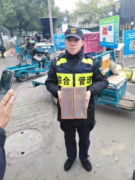 當(dāng)天11:35,楊洪在紅豐路巡邏時(shí),在小芳超市向東約30米處撿到兩盒靈芝,便立即按照工作流程上報(bào)當(dāng)班組長(zhǎng),并按照指示在原地等待失主。